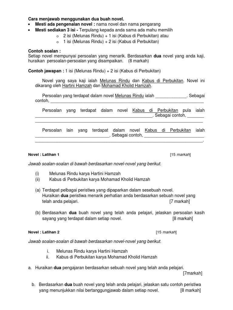 Contoh soalan novel english spm terengganu w komsas tingkatan 1 selangor a kbat bahasa melayu dan jawapan bimasakti menari malacca c kertas pt3 . Fokus bahasa melayu spm 2016. Koleksi soalan novel percubaan spm 2021. Watch popular content from the following creators: Namun, apabila saya ditukarkan ke smk seri londang dan mula bertugas pada 27 mac 2017, saya mengaktifkan semula blogspot ini untuk kemudahan . (kertas 2) (soalan + skema) . Berikutnya tema persoalan plot sinopsis watak perwatakan latar jawapan soalan nilai dan pengajaran novel .